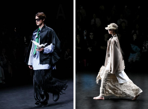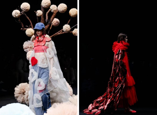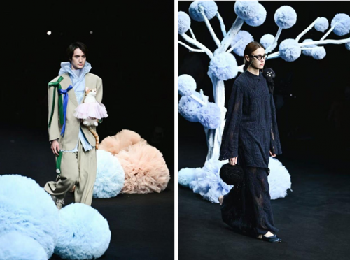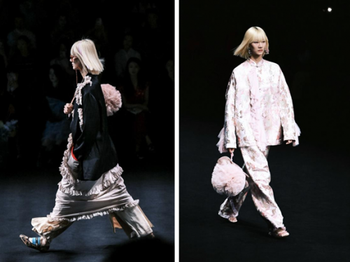 暗黑牛仔外套内里绣有若隐若现的粉色爱心,皮质短裙的磨损爱心口袋盖暗藏反叛。设计师以“藏”代“显”,让甜美元素成为酷感态度的隐秘载体。