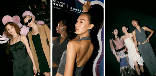 时尚主理人、 国际买手、 时尚女魔头Amanda以及TOP级时尚媒体、海内外知名博主等嘉宾亲临现场支持品牌。身着EVVLY , 将品牌的甜酷与浪漫演绎得淋漓尽致,成为秀场上的耀眼焦点。
