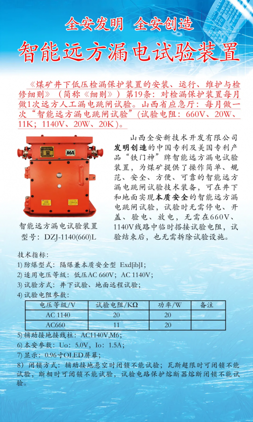 【委员心声】关于积极推广应用智能抗违章保护技术及智能远方漏电试验系统新技术的提案