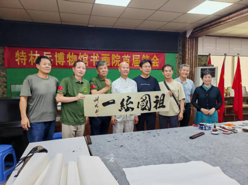 与此同时,特林兵博物馆书画院首届《迎建军百年,百幅作品展》笔会活动也吸引了众位书画家齐聚一堂。艺术家们以笔为戈,以墨为魂,创作了一幅幅气势恢宏、意蕴深远的书画作品。这些作品或描绘特林兵开疆拓土的壮烈场景,或歌颂新时代军人的风采,或展现祖国山河的壮丽,用独特的艺术语言向中国人民解放军建军百年献上了一份厚重的贺礼,也生动诠释了红色文化与中华优秀传统文化的深度融合。
